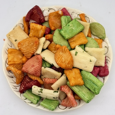 Onze Kleurrijke Gemengde Rijstcrackers brengen een verscheidenheid aan levendige vormen en smaken samen in één heerlijke snack. Gemaakt van premium rijst en gebakken tot een goudgele knapperigheid, deze crackers zijn er in groene, oranje, rode en natuurlijke kleuren. Hun knapperige textuur en opvallende uiterlijk maken ze een populaire keuze voor snackverpakkingen in de detailhandel, partymixen en gezonde snackalternatieven.