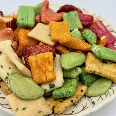 Of ze nu alleen worden gegeten, gedeeld op bijeenkomsten of verpakt als een snack voor onderweg, deze crackers leveren zowel authentieke Japanse senbei-smaak als een moderne kleurrijke uitstraling.![]()